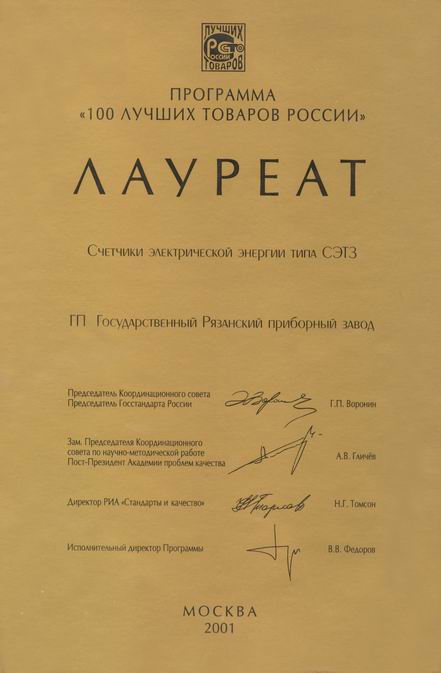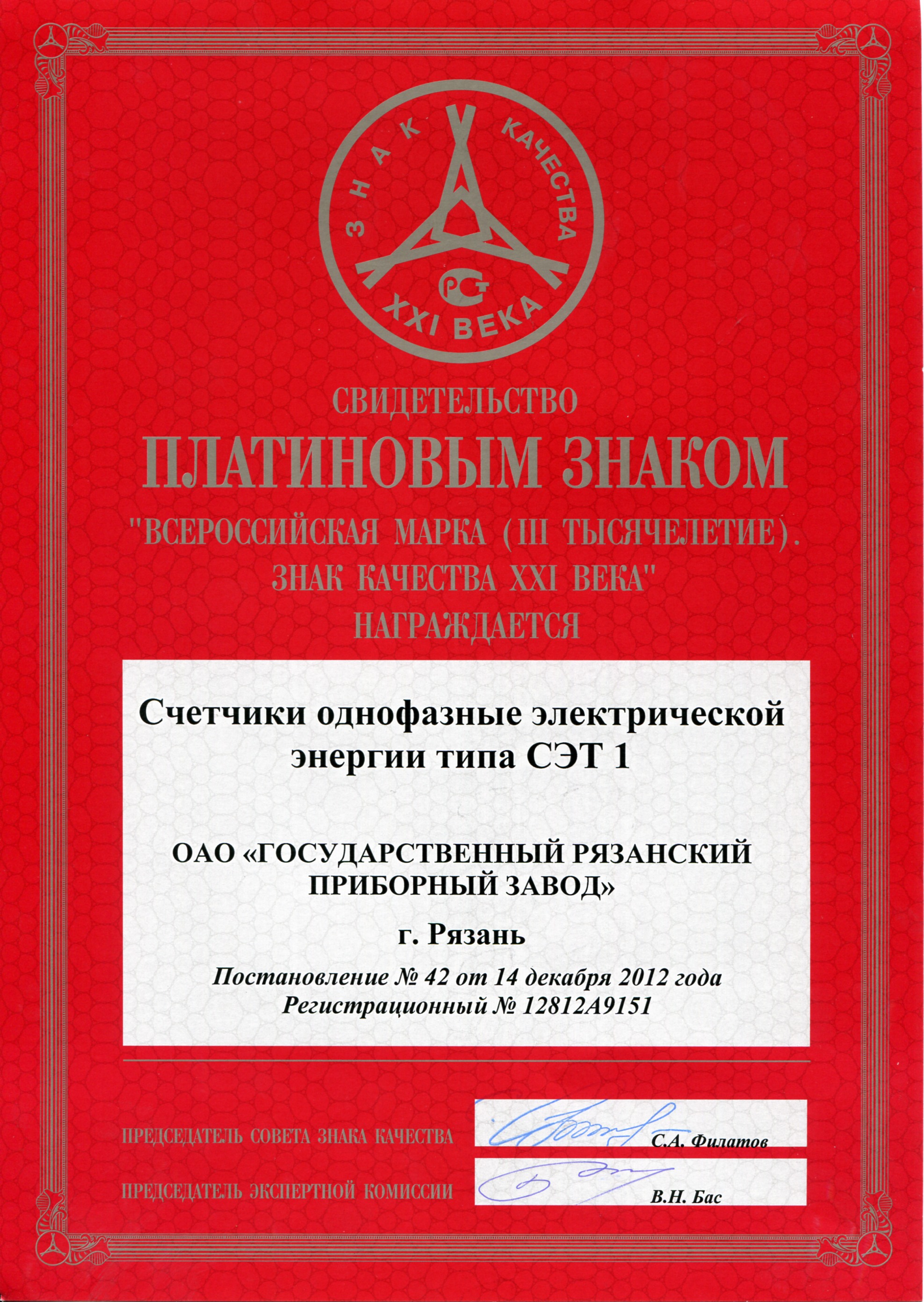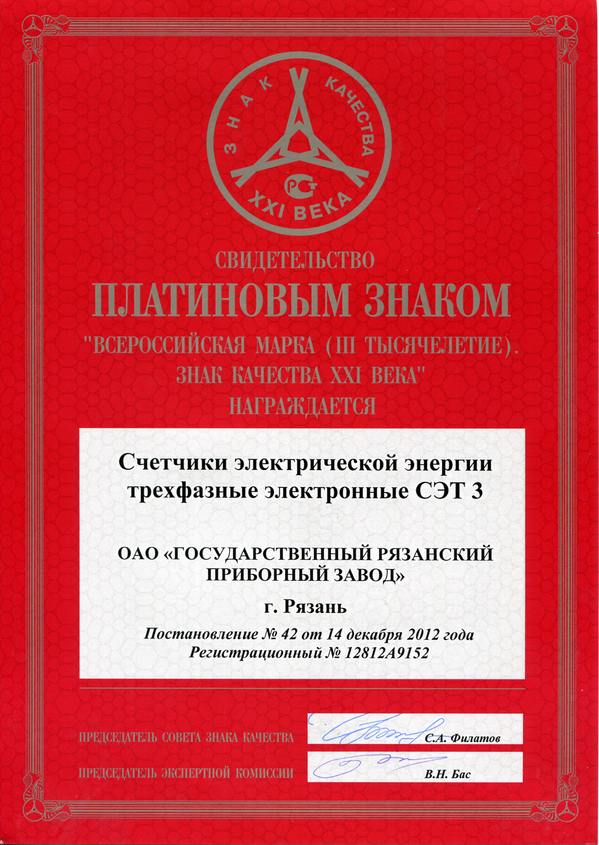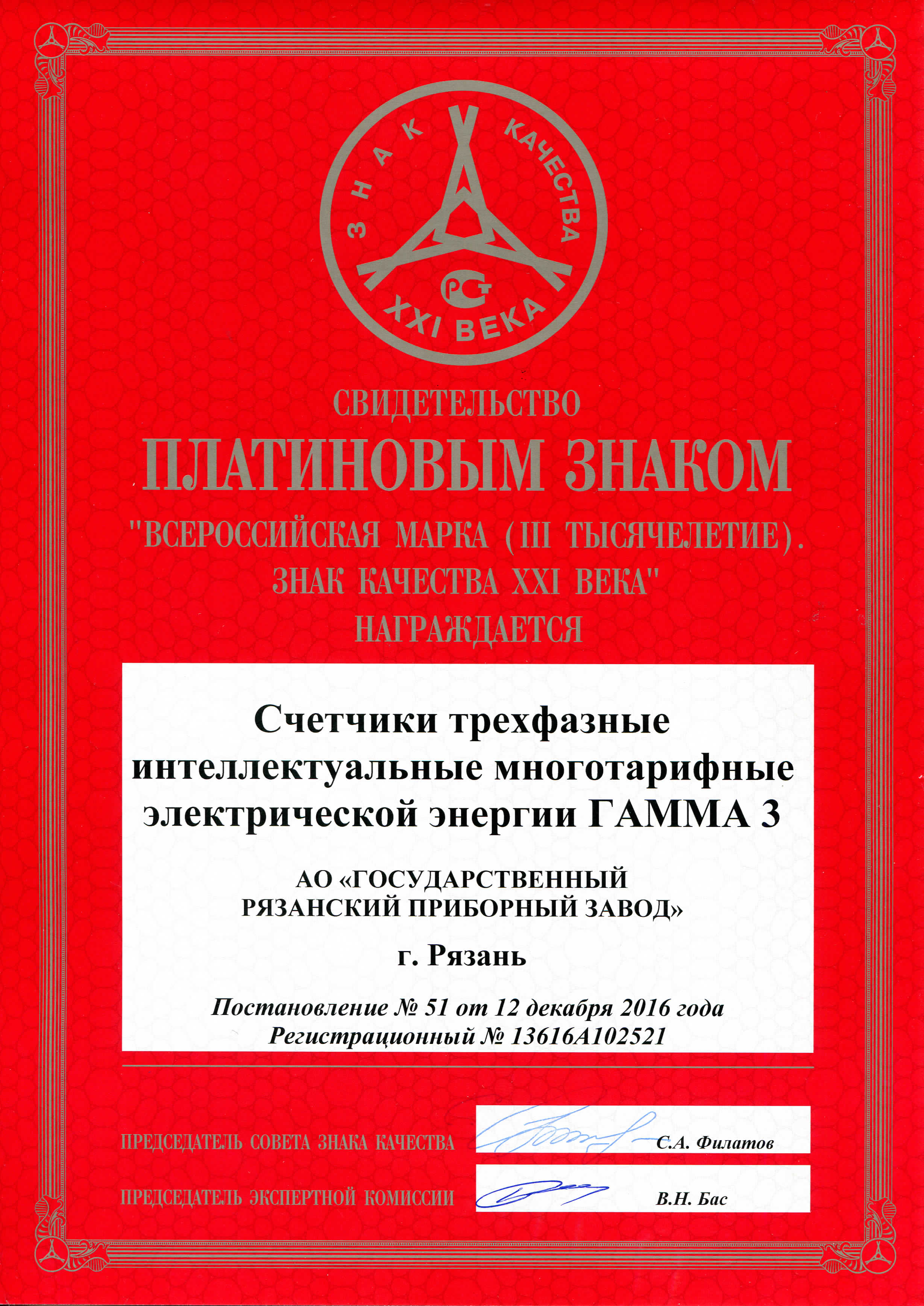 Платиновый знак (Счетчики электроэнергии ГАММА3)