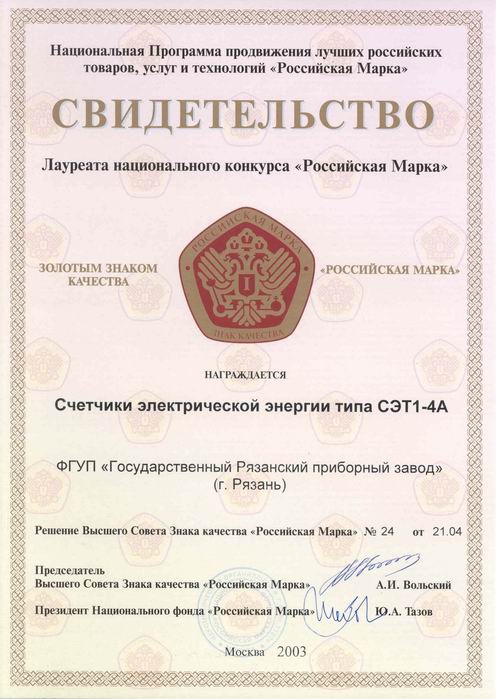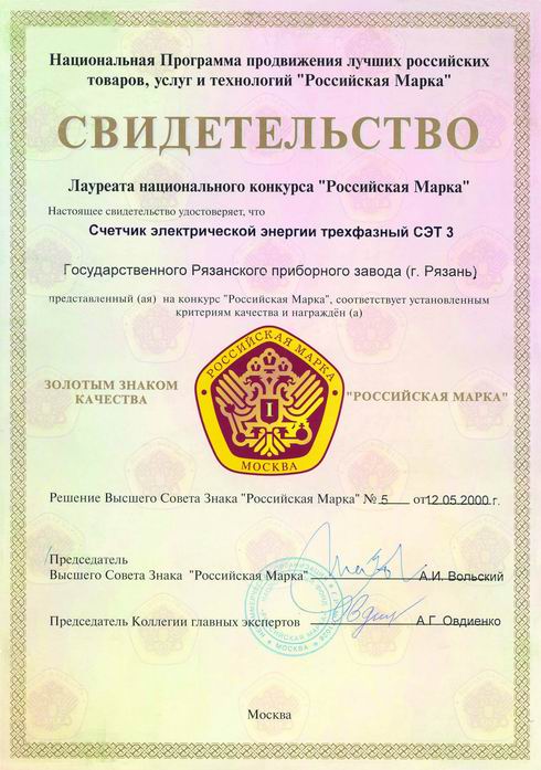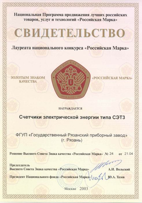 Всероссийская марка. Знак качества XXI века