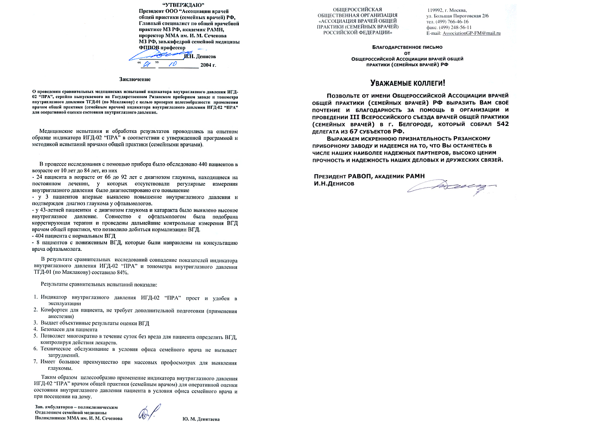 Проведенная клиническая апробация приборов ИГД-02 и ИГД-03 ведущими специалистами российских кафедр семейной медицины убедительно доказала неоспоримые преимущества новых приборов, удобство и безопасность их применения: