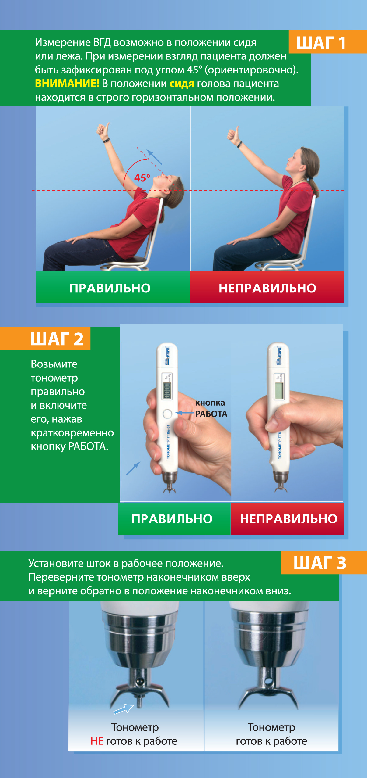 Уникальная методика измерения ВГД сочетает в себе нестандартные подходы к тонометрии глаза: транспальпербальный (измерение через веко) и склеральный (измерение в зоне склеры, а не роговицы)