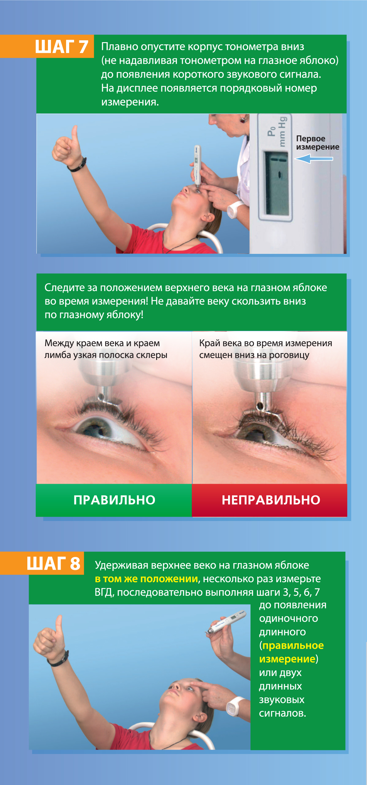 Прибор предназначен для измерения истинного ВГД через веко в области склеры.