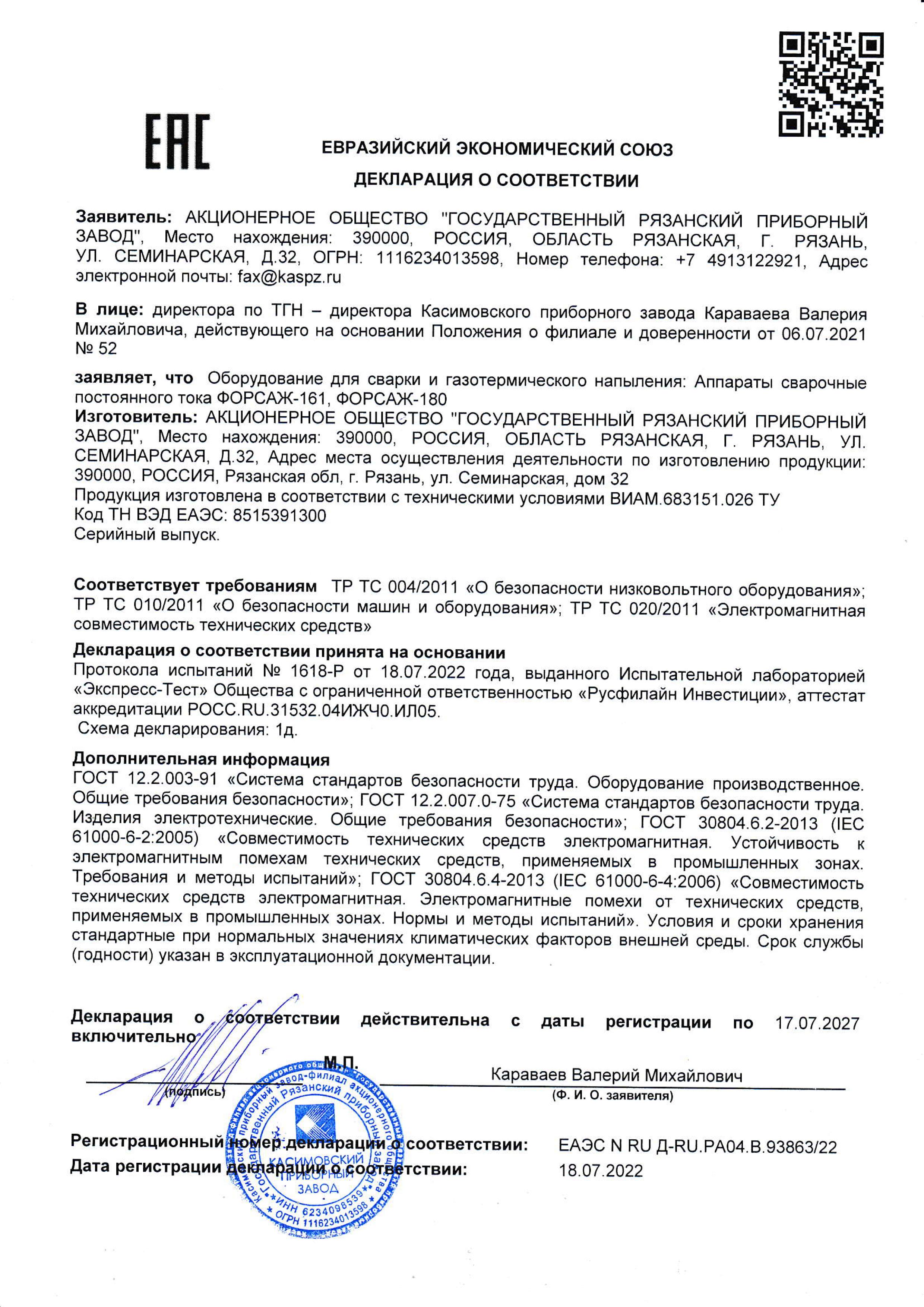 Аппарат сварочный постоянного тока ФОРСАЖ-161 | 1 шт |