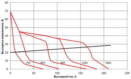 Выходные вольтамперные характеристики аппарата при напряжении питания 187 вольт
