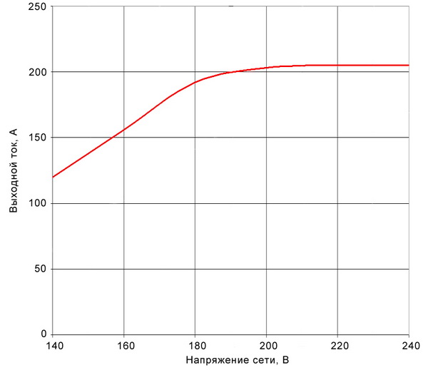 При значениях напряжения питания 187...242 В гарантированы стабильные выходные характеристики сварочного аппарата.