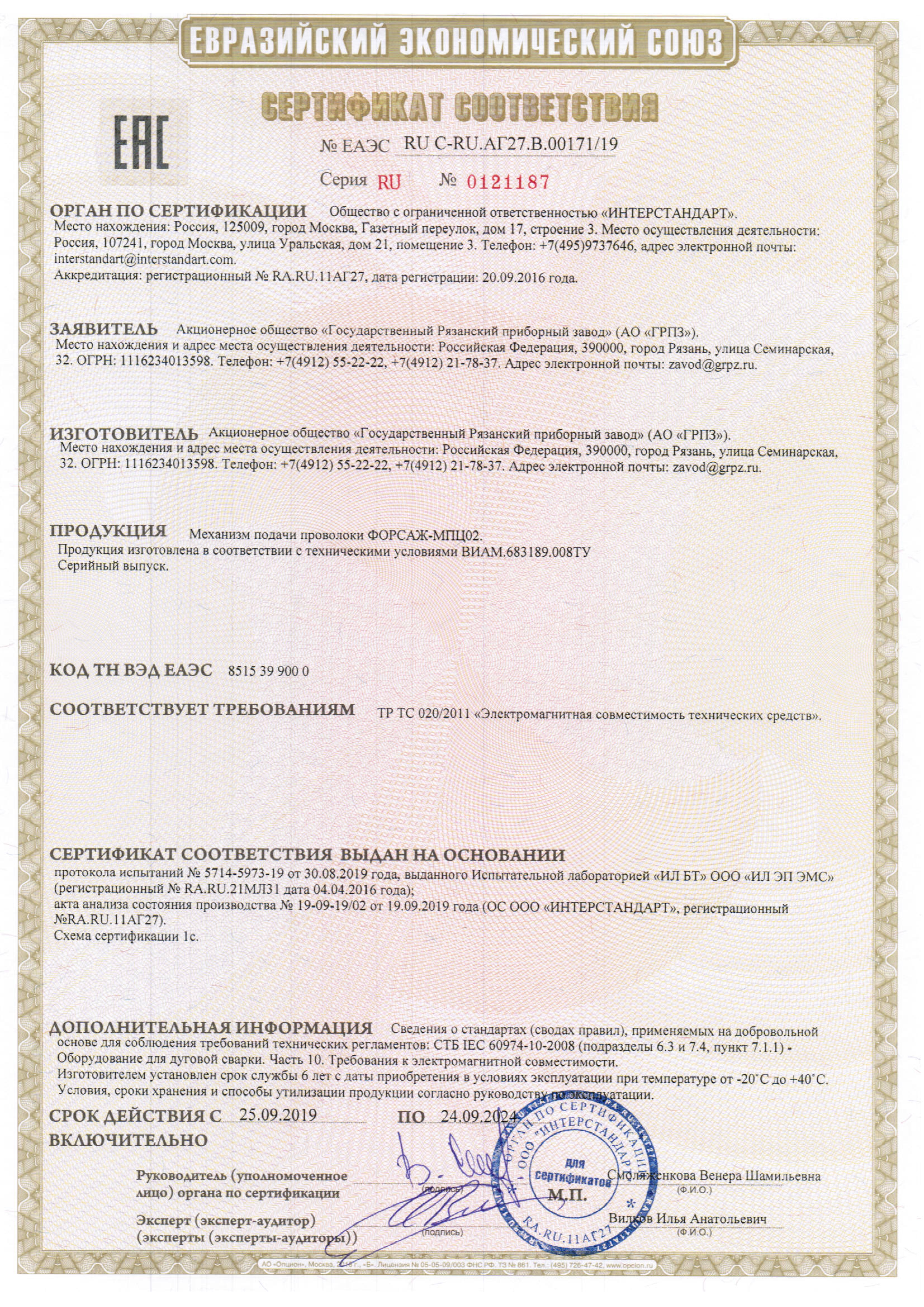 Аттестуется по РД 03-614-03 (НАКС). Цена за аппарат с аттестатом НАКС - 110 000р.